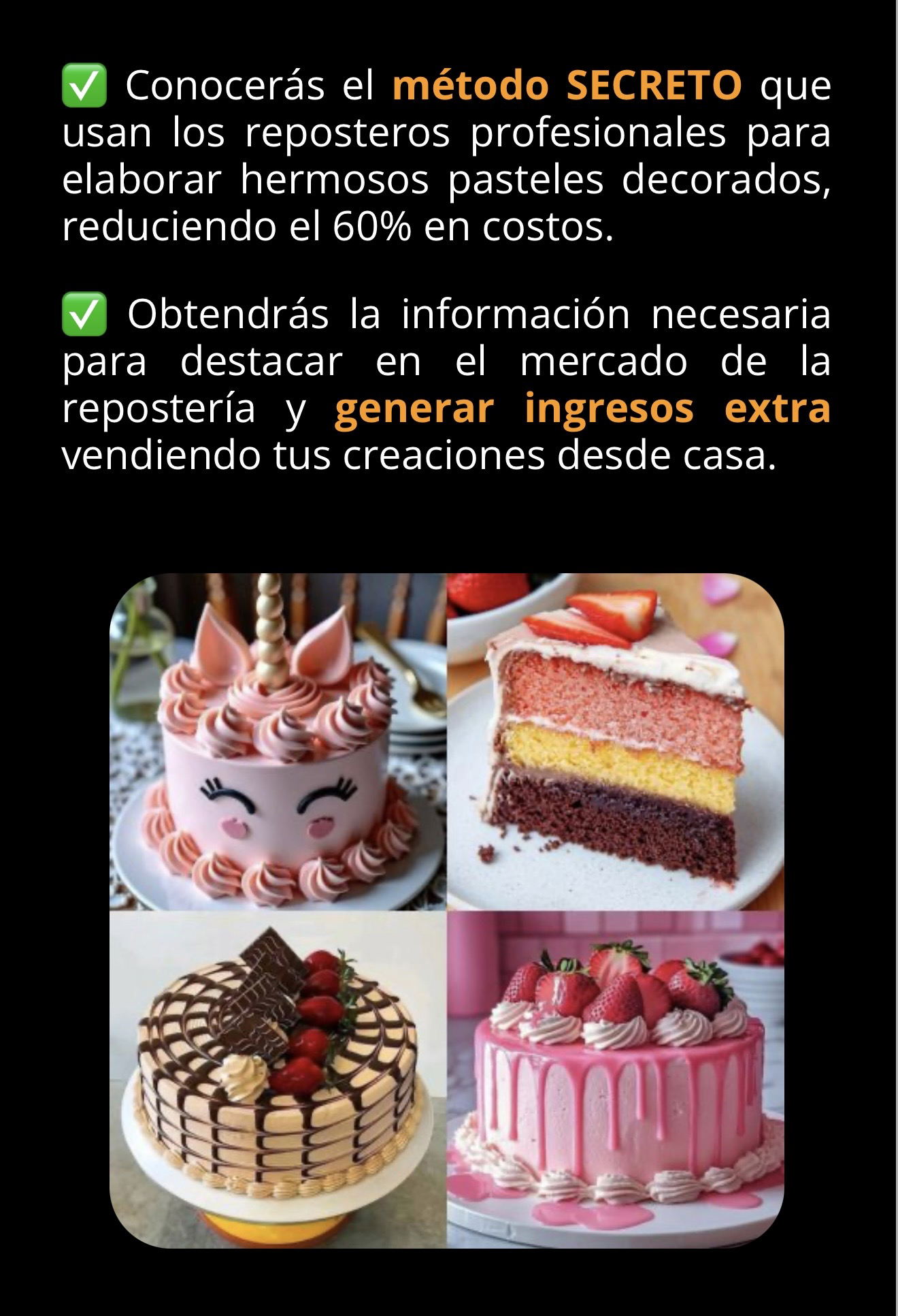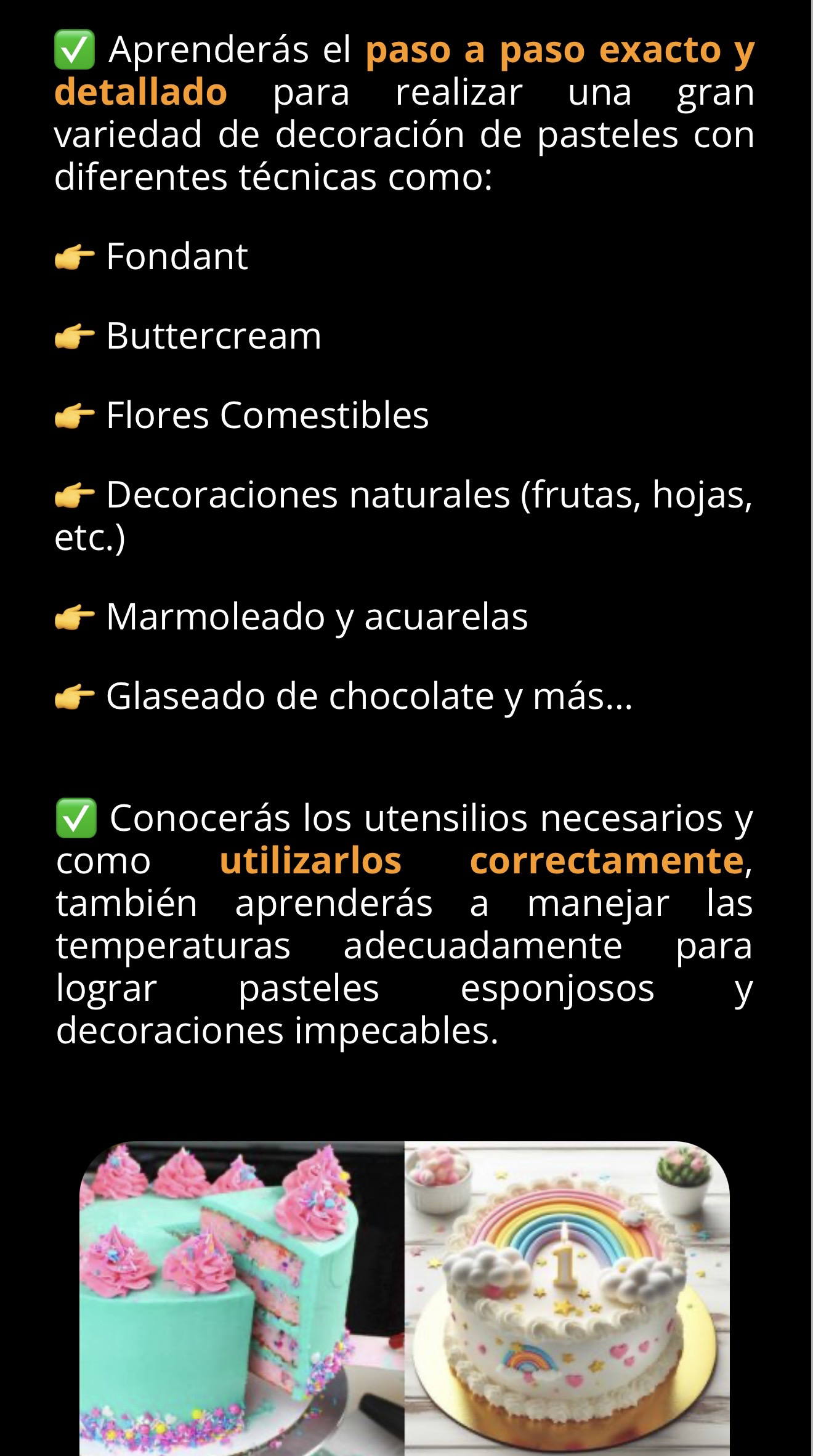 ¿Te sientes frustrada porque no encuentras opciones para generar ingresos extras en esta época tan importante?¿Te gustaría conocer el paso a paso garantizado para preparar y decorar fácilmente deliciosos pasteles en casa?¿Te gustaría aprender en menos de 7 días y comenzar tu propio negocio rentable en casa?